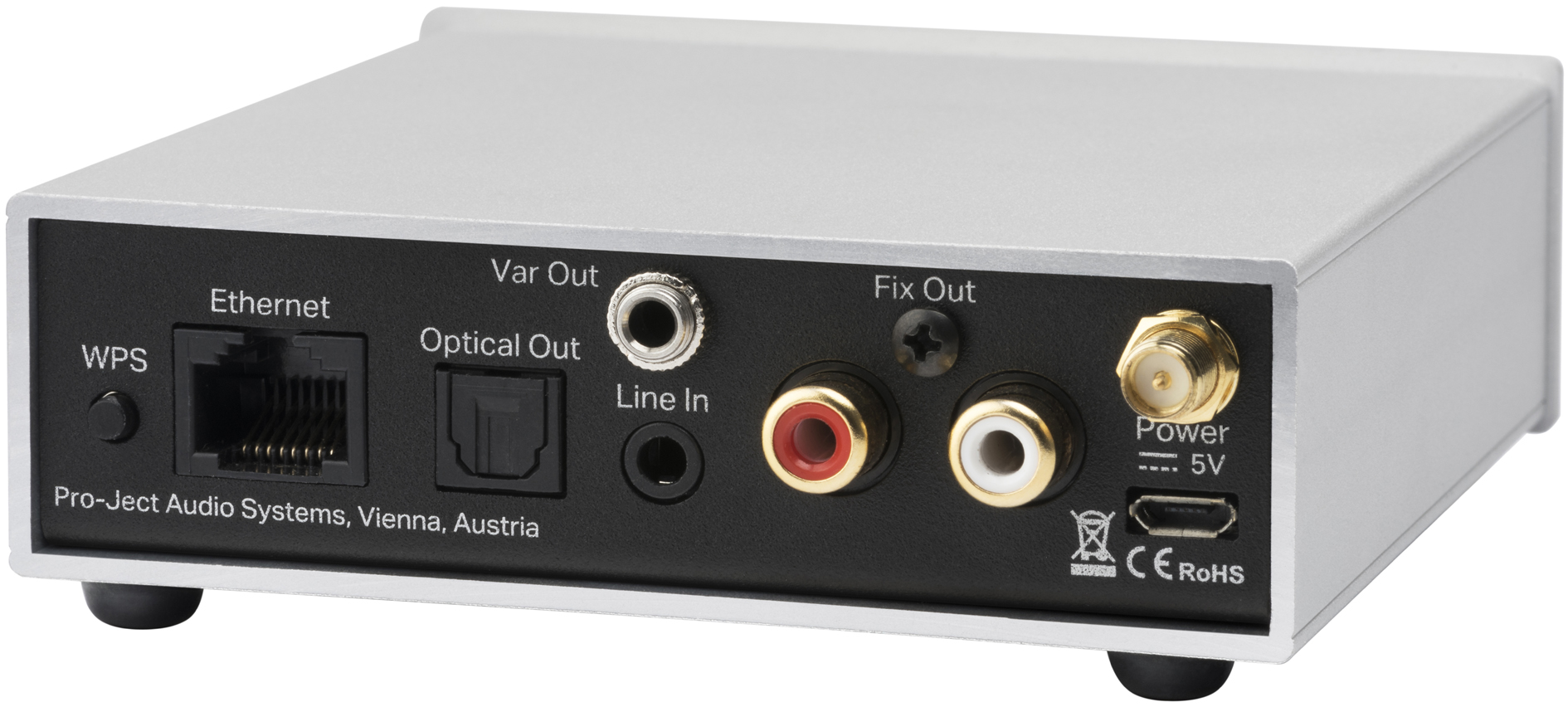 Drei unterschiedliche Ausgänge erlauben eine flexible Integration der Pro-Ject Stream Box S2 in unterschiedliche Anlagenkonfigurationen. Ein fixer Line-Level-Cinch-Ausgang kann an einen Vorverstärker und ein in der Lautstärke regelbarer 3.5mm-Klinkenausgang zum Beispiel an aktive Lautsprecher oder direkt an einen Endverstärker wie die Pro-Ject Amp Box S2 angeschlossen werden. Mit dem optischen Digitalausgang kann auch ein externer D/A-Wandler versorgt werden. Die Pro-Ject Stream Box S2 unterstützt eine Vielzahl an Musik-Services wie Spotify, Tidal, TuneIn und mehr. Die speziell entwickelte App „Pro-Ject Stream S2“ ermöglicht eine bequeme und einfache Steuerung des Geräts vom Smartphone oder Tablet (iOS und Android).