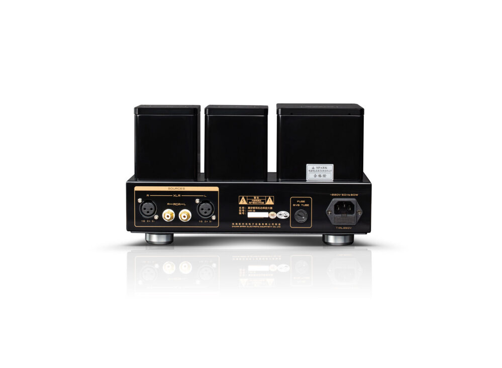 Zwei 6V6S-Ausgangsröhren treiben ein Paar eigens entwickelte Ausgangstransformatoren an, die unsymmetrische und symmetrische Kopfhörerausgänge unterstützen. Die Sekundärwicklung der Ausgangstransformatoren stellt eine alternative Phase bereit und bildet so einen echten symmetrischen Ausgang.