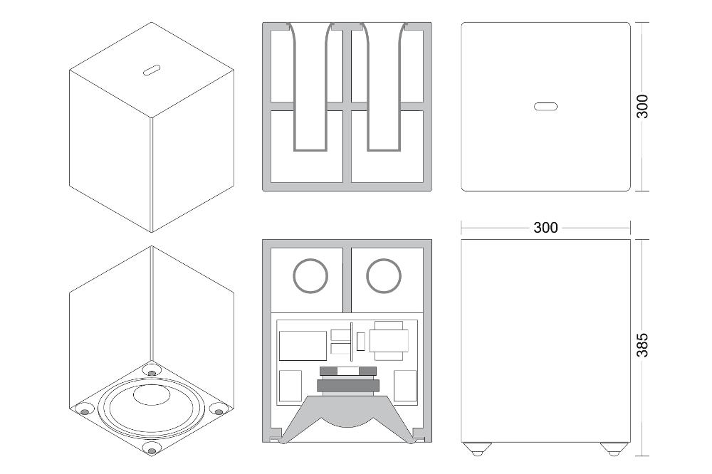 Aktiver Subwoofer für Hifi/Stereo oder Heimkino-Systeme. Das schicke und elegante Design lässt sich in jeder Art von Einrichtung einbinden.