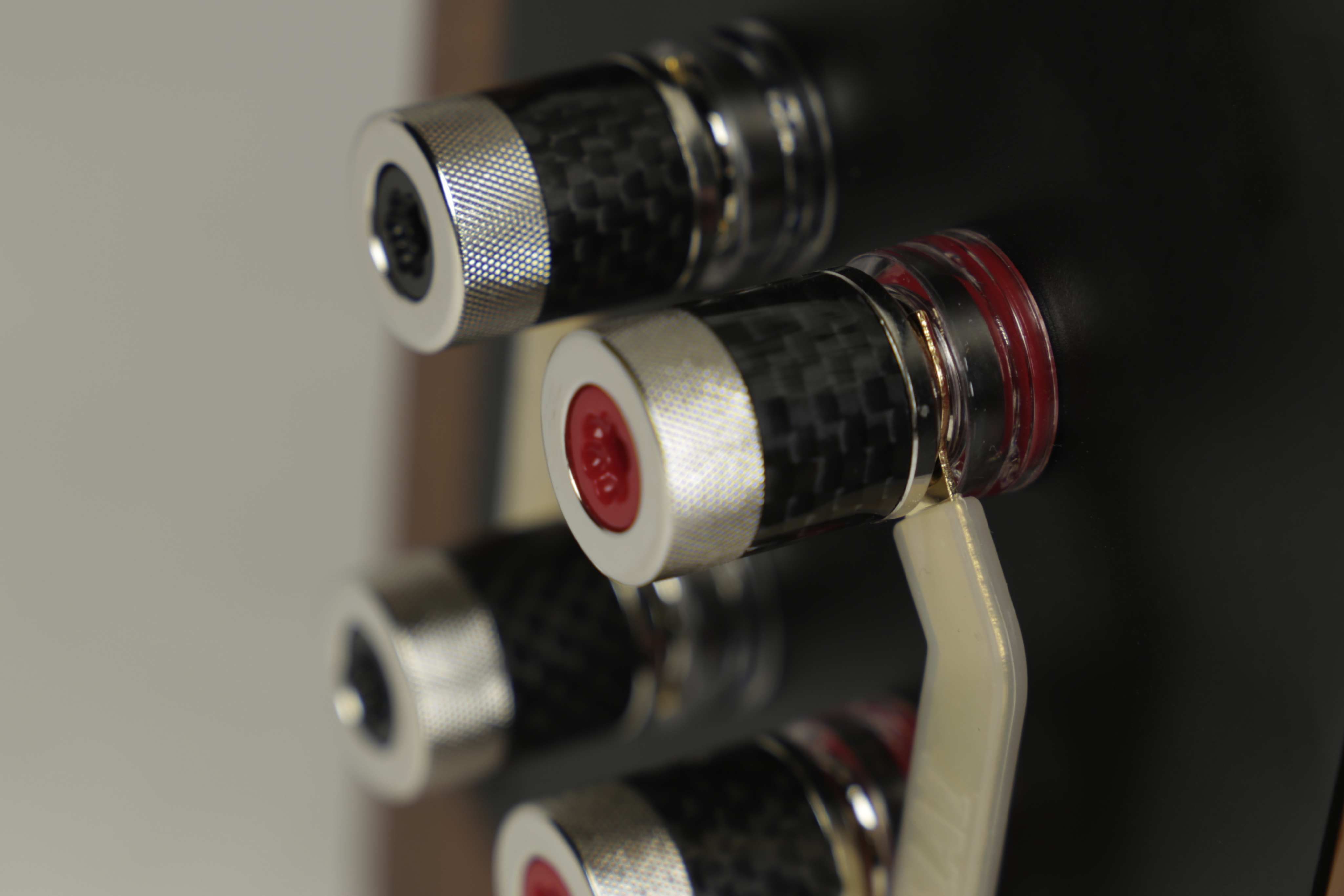 Die Bodenplatte der Concentro wird aus einem Stück Aluminium hergestellt. Mittels einer CNC-Fräse werden alle Konturen aus dem Material ausgearbeitet, anschließend wird die dann noch 24 kg schwere Bodenplatte glasperlengestrahlt und eloxiert. Die großzügig dimensionierten Spikes gewährleisten eine perfekte Stabilität und ideale Kopplung mit jedem Fußbodenbelag.
