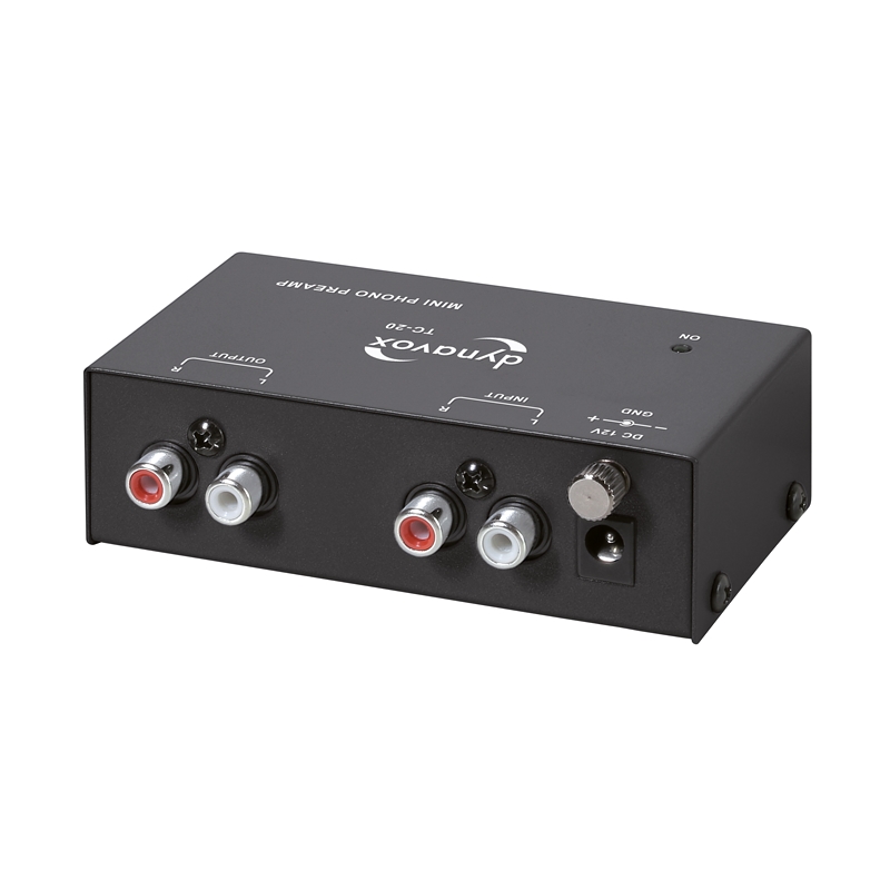 Der Dynavox TC-20 (MM) Phonovorverstärker, zum Einsatz von Plattenspielern an Verstärkern ohne Phonoeingang.
