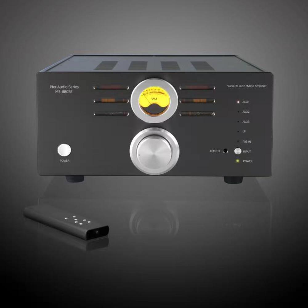 Mit dem Modell MS-880 SE bietet der Verstärkerspezialist Pier Audio erstmals einen Vollverstärker der Gold Serie, mit integrierter MM Phono Stufe an. Die Röhrenvorstufe entspricht der, des bestens beleumundeten MS-580 SE (z. B. Diapason Frankreich, Jazzthetik Deutschland). Bezüglich Endstufe hat Pier Audio beim neuen Modell mächtig aufgerüstet. Mit einer Leistung von 2 x 100 Watt liegt diese doppelt so hoch wie beim kleinen Bruder.