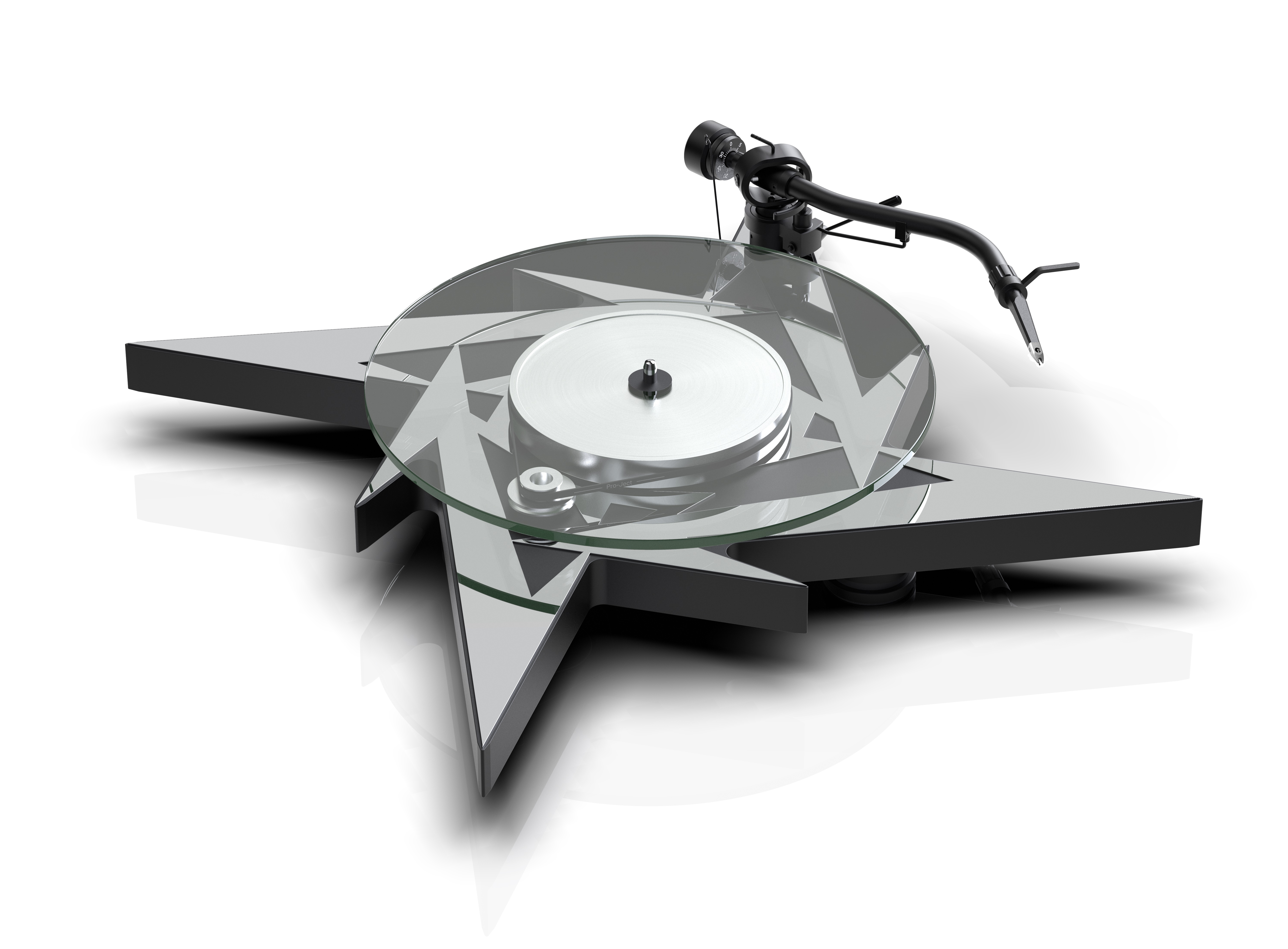Der gemeinsam mit der Band Metallica entworfene und von Pro-Ject in Europa produzierte Plattenspieler ist die Musikmaschine nicht für Metal-Fans! Der Glasteller erlaubt einen freien Blick auf das ikonische Bandlogo, das die Chassisform dominiert. Eine auf Spiegelglanz polierte und exakt in der Form des Logos geschnittene Metallplatte bringt dem MDF-Chassis zusätzliche Stabilität und amtlichen Metal-Look.