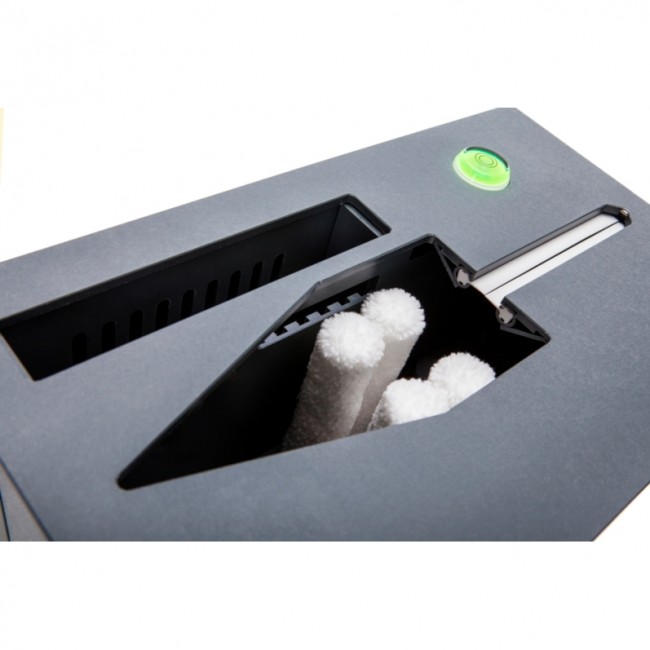 Die Bedienung ist denkbar einfach: Die Schallplatte wird senkrecht von oben in die Geräteöffnung gesteckt und der rote Startknopf gedrückt. Eine gelbe LED leuchtet auf, der feinfühlig-intensive Reinigungsvorgang erfolgt automatisch. Dabei entfernen gegenläufig rotierende Mikrofaser-Reinigungswalzen sowie Ultraschall schonend und gründlich selbst feinsten, tief in den Rillen sitzenden Schmutz. Während des Betriebs wird die Reinigungsflüssigkeit permanent gefiltert. Anschließend garantieren zwei extrem leistungsstarke Motoren einen effektiven Trocknungsvorgang der Schallplatte – bei geringer Lautstärke. Wenn nach kurzer Zeit die grüne LED leuchtet, kann die saubere Platte entnommen werden.